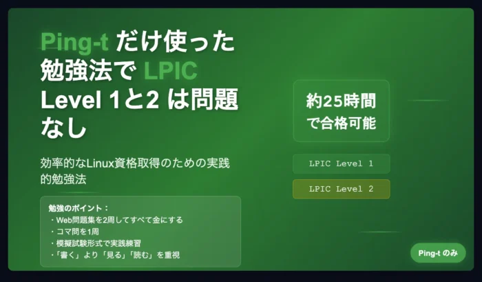 Ping-t だけ使った勉強法で LPIC Level 1と2 は問題なし