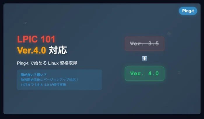 間がいいのか悪いのか、Ping-t で LPIC 101 の Ver.4.0 対応