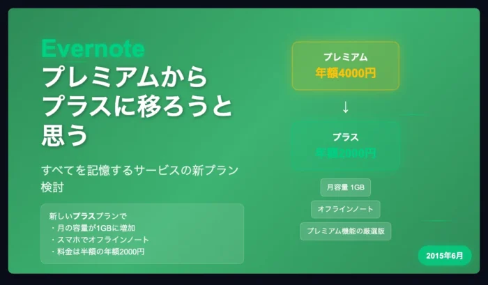 Evernote プレミアムからプラスに移ろうと思う