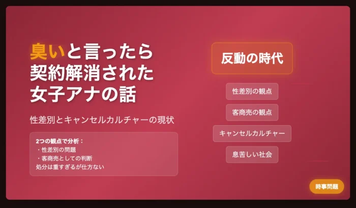 臭いと言ったら契約解消された女子アナの話