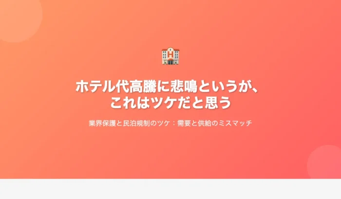 ホテル代高騰に悲鳴というが、これはツケだと思う