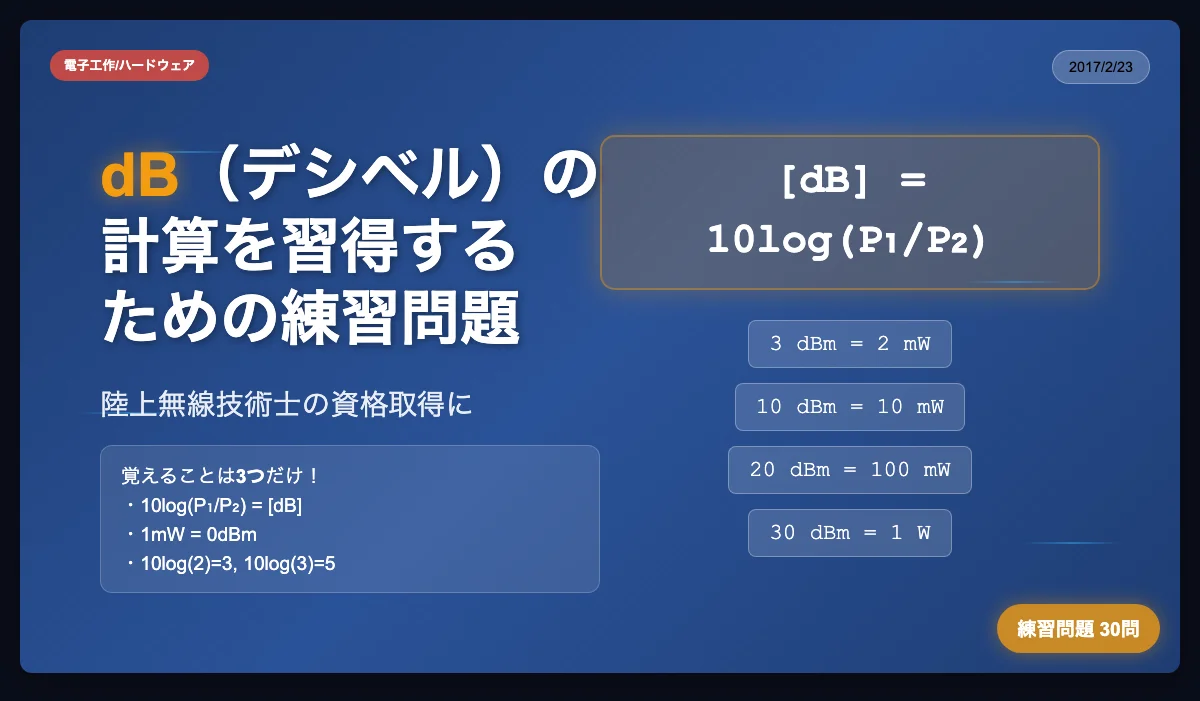 dB(デシベル)の計算を習得するための練習問題30問