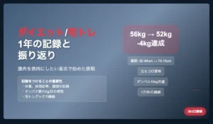 さすがに去年から比べれば変わってるけどね。数値上はもちろん、写真を去年撮っていたのだが、今と比較すると「あ、確かに効果あったんだな」と自分で思った。帰省したときに姉から頑張ったやんと言われたので、客観的にも効果はあったのだろう。とはいえここ数ヶ月はスランプ気味。