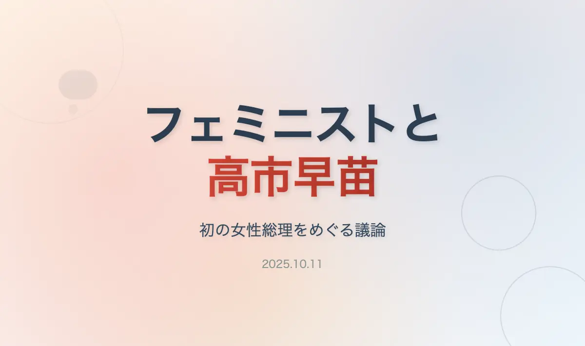 なので、高市早苗の成功によって形式上女性がトップになっても、フェミニズムに良い影響があると思えないため、歓迎できない、となる。この心情は理解できる。