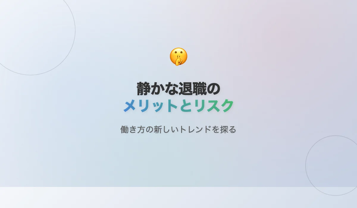 まぁ実際、社会や組織側もだいぶ問題はあるんじゃないのかね……。言われているほどに静かな退職者の絶対数は多くなさそうだが、よく聞かれるワードになっているのは確かだし、自分としてもそういう働き方をしたくなる気持ちはけっこうわかってしまう。静かな退職者は同僚としては最悪だが、そういう人がいるからこそ組織や社会も対応しなくてはいけないと思うかもしれない。