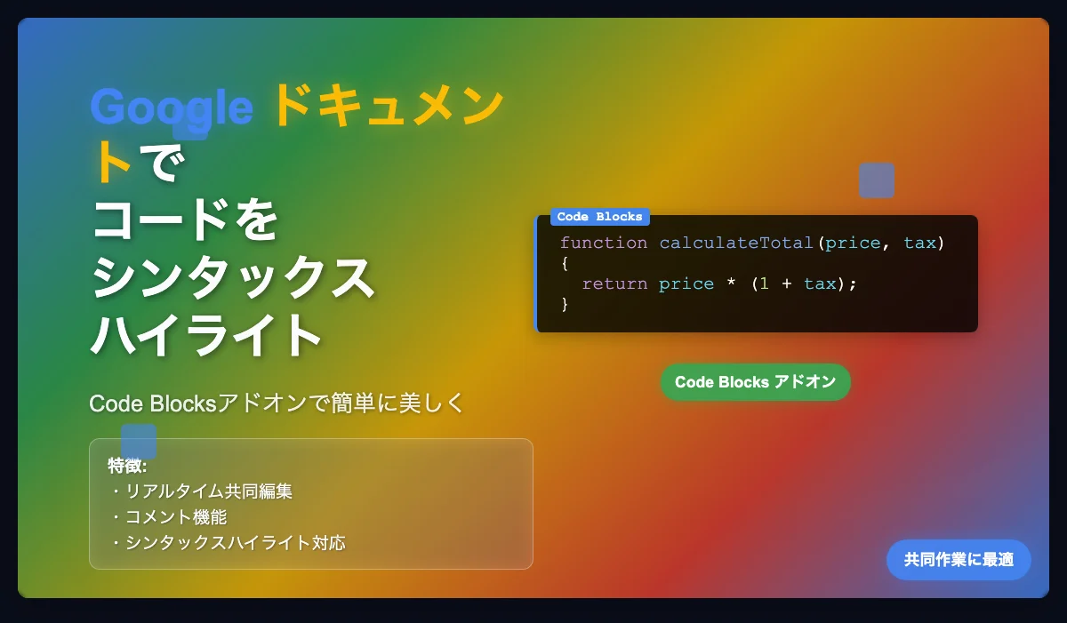 で、ソースコードを見やすくするには頑張らないといけないのかなと思ったのだが、アドオンを導入したら一発で、とてもみやすい。もしかしてGoogle ドキュメント最強なんだろうか。