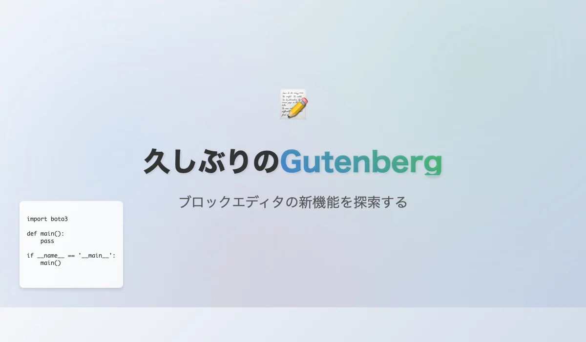 いくつかの機能を試すために、久しぶりにGutenbergを起動している。中途半端ではあるがMarkdownも使えるし。