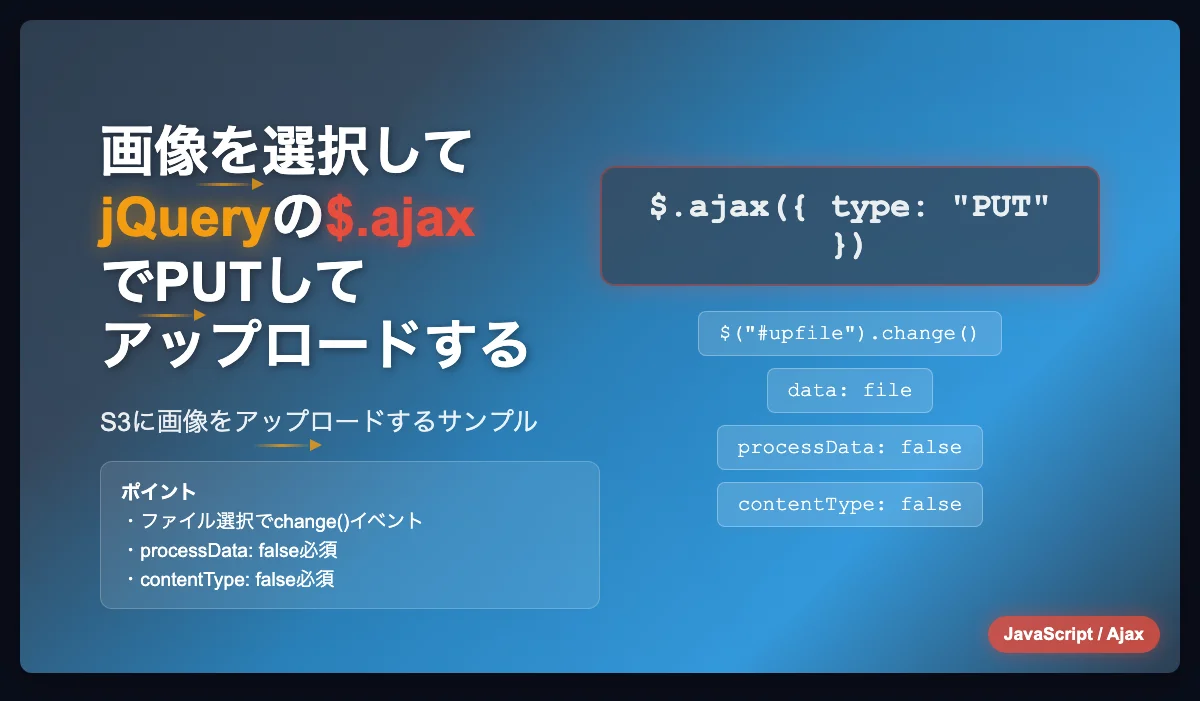 画像を選択して$.ajaxでPUTしてアップロードするメモ