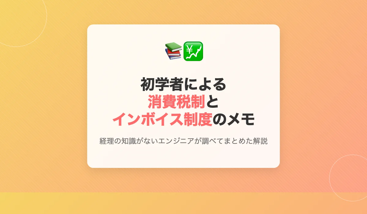 インボイス制度、というか消費税制について調べる必要があったので、そのメモ。なお自分はしがないエンジニアであり経理ではないので、実務経験はないということは注意されたい。その分同じような立場の人にとっては初学者同士特有のわかりやすさがあるかもしれない、などと考えてメモを公開する。