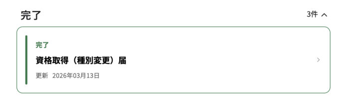 申請完了後は、「やること」なる謎の項目から進行中であることがわかる。