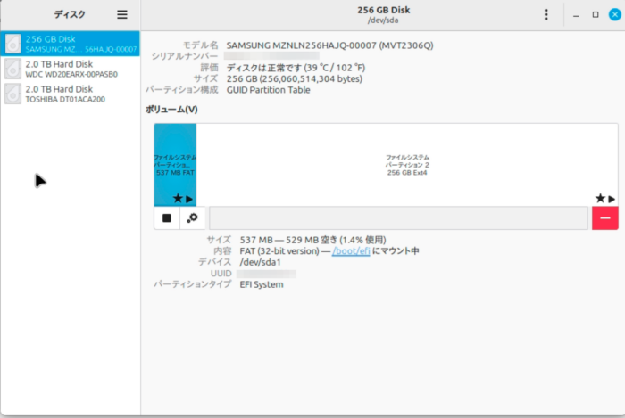 基本的には /etc/fstabを編集するいつものあれなのだが、GUIで進めていく。