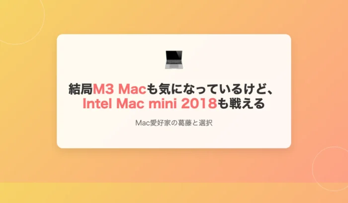 結局M3 Macも気になっているけど、Intel Mac mini 2018も戦える
