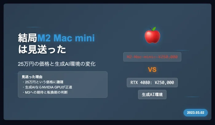 結局M2 Mac miniは見送った
