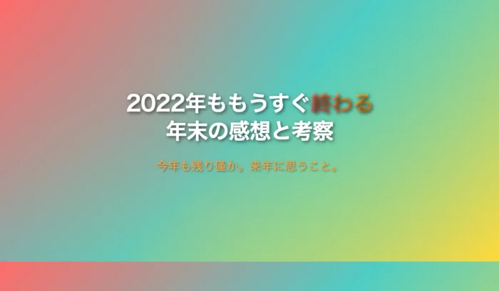 2022年ももうすぐ終わる