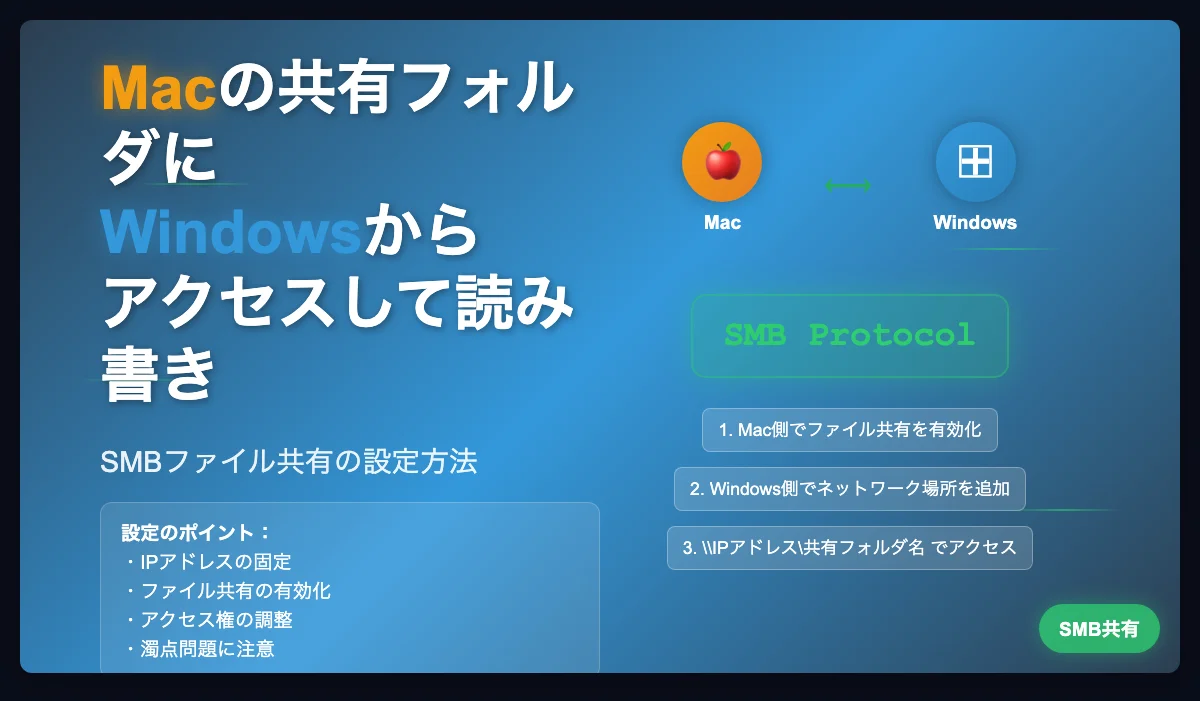 MacでWindowsとSMBでファイル共有するための操作メモ。
