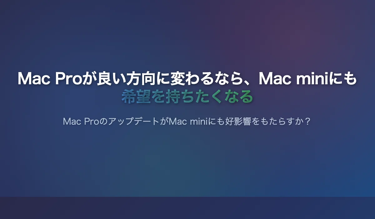 正直言って、だいぶ諦めていました。しかし、今回のことが、もしApple内でMacの方向性が変わりつつあることを示しているのであれば、ちょっと期待してもいいのかなと、またそんな淡い希望を抱いています。Mac miniはプロユースとは言えませんが、自分でディスプレイを選べますし、拡張性もある程度はあるので、これはこれで便利で可愛いものです。