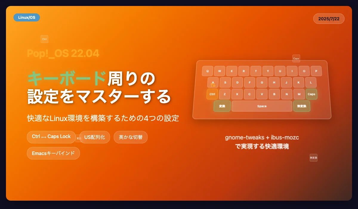 Pop!_OS 22.04でのキーボード周りの設定:CtrlとCaps Lockのスワップとか英かなとかEmacsキーバインドとか
