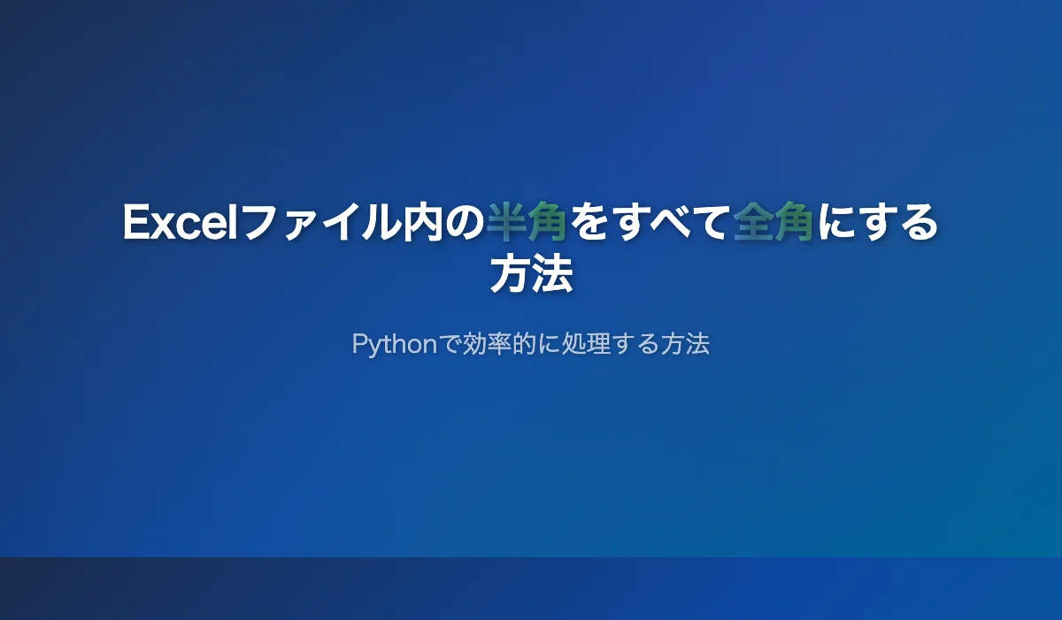 Excelファイルで、半角の文字をすべて全角に変換する。pythonでやる。