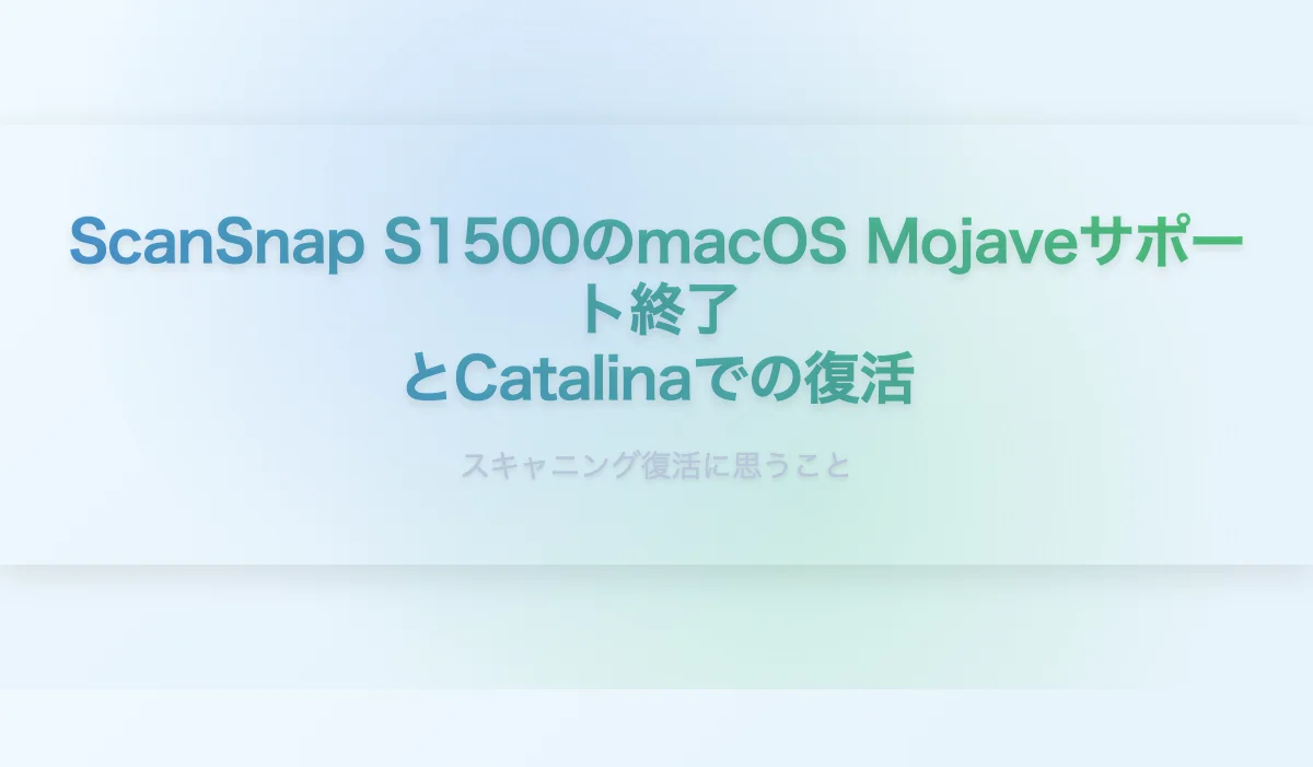 公式にサポートしないと言われてしまってはどうしようもない。まさかこのためだけにHigh Sierraを使い続ける、なんてできるわけもないし…僕はmojaveで搭載されたダークモードやスクリーンレコードの機能を気に入っている。そもそも、今頃気づいたくらいだから、ScanSnapの出番自体がさほどない。