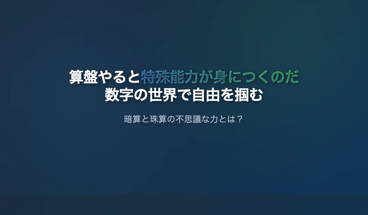 実利はもちろんあるのですが、個人的に面白いと思うのは、数字が算盤の珠に見えるようになることです。これによって、計算を図形的にできるようになります。これ、人類が後天的に身に着けられる特殊能力の一つだ、と思うんです。