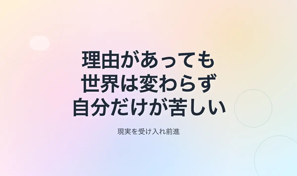 世界は変わらないし、自分は世界の影響を受ける、そういう現実を見据えたうえで、納得できる対応をしているかどうか。理由があったのでできませんでした、でも別にいいけど、それを積み重ねた結果の責任は自分が取ることになる。いいとか悪いとかじゃなく、現実にそうなる。現実の話。