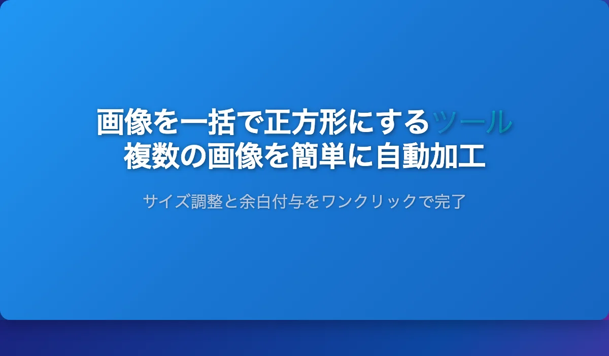複数のサイズがまちまちな画像ファイルについて、一括でまとめて正方形にしたい。一辺の長さは縦幅と横幅のうち大きい方を採用し、足りない分は白または透明で塗りつぶす。