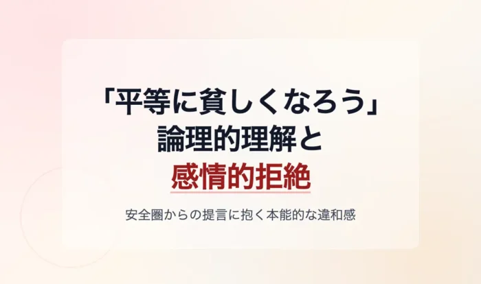 「平等に貧しくなろう」は一つの考え方と思う一方それはそれとしてめっちゃ腹立つのはなぜか
