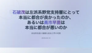 また、高市早苗が本当に保守層に答えるかはわからないと思う。彼女は期待されながらも、石破政権下で特に存在感を示さなかった。時折、政権批判とも取れるリップサービスのようなものはあったが、彼女が具体的に何かしたとは、ついぞ聞かないままに石破茂は辞任した。口の悪いネット民からは「ガス抜き女王」などと呼ばれていた。石破政権下でガスを抜いていた女王が、晴れて名実ともに女王になれば覚醒するのだろうか。