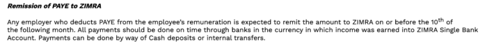 All payments should be done on time through banks in the currency in which income was earned into ZIMRA Single Bank Account.